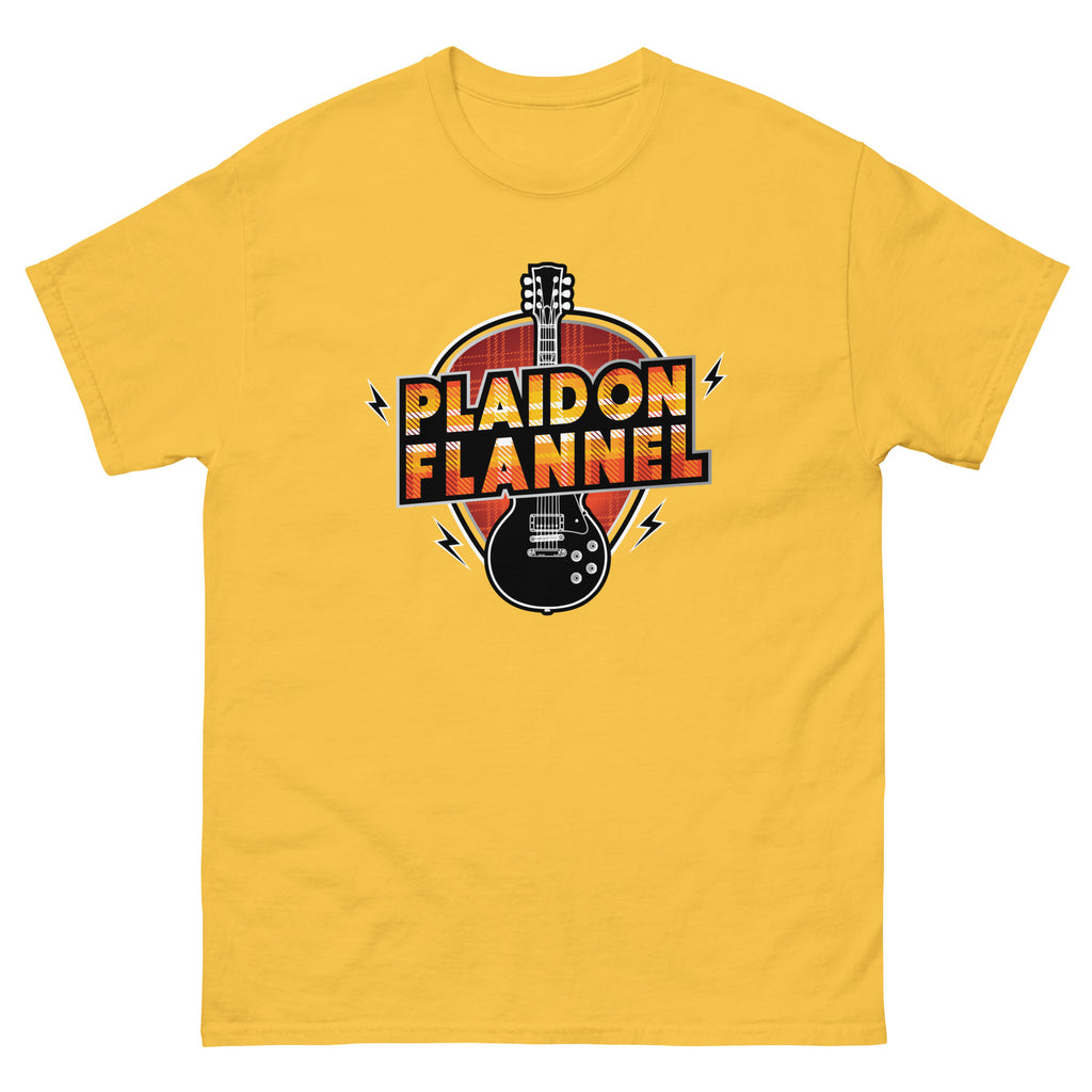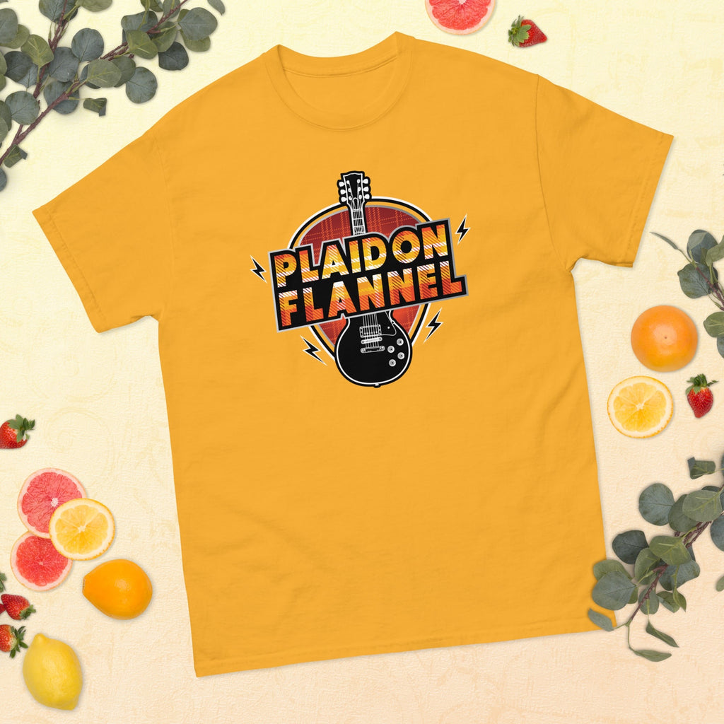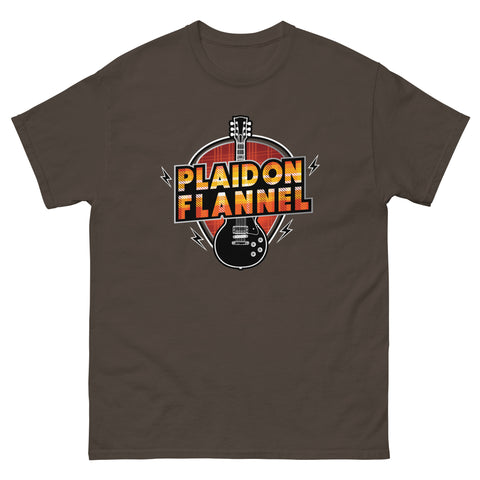 Band shirts are a must for any rocker’s wardrobe. And Plaid On Flannel’s latest t-shirt offering captures the feel of a classic band tee. With the guitar representing rock and roll. And the tartan design making a timeless fashion statement. It’s a chance to show off the music that your friends should know about!